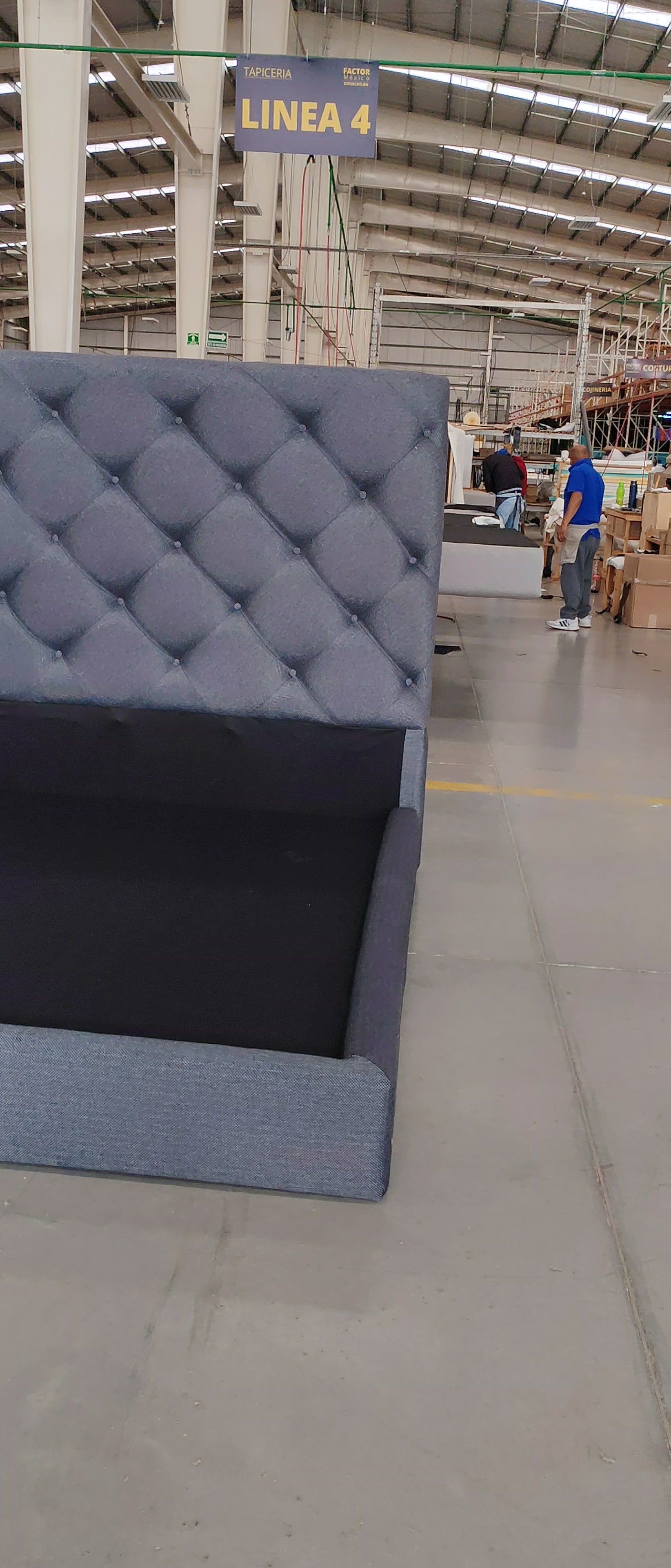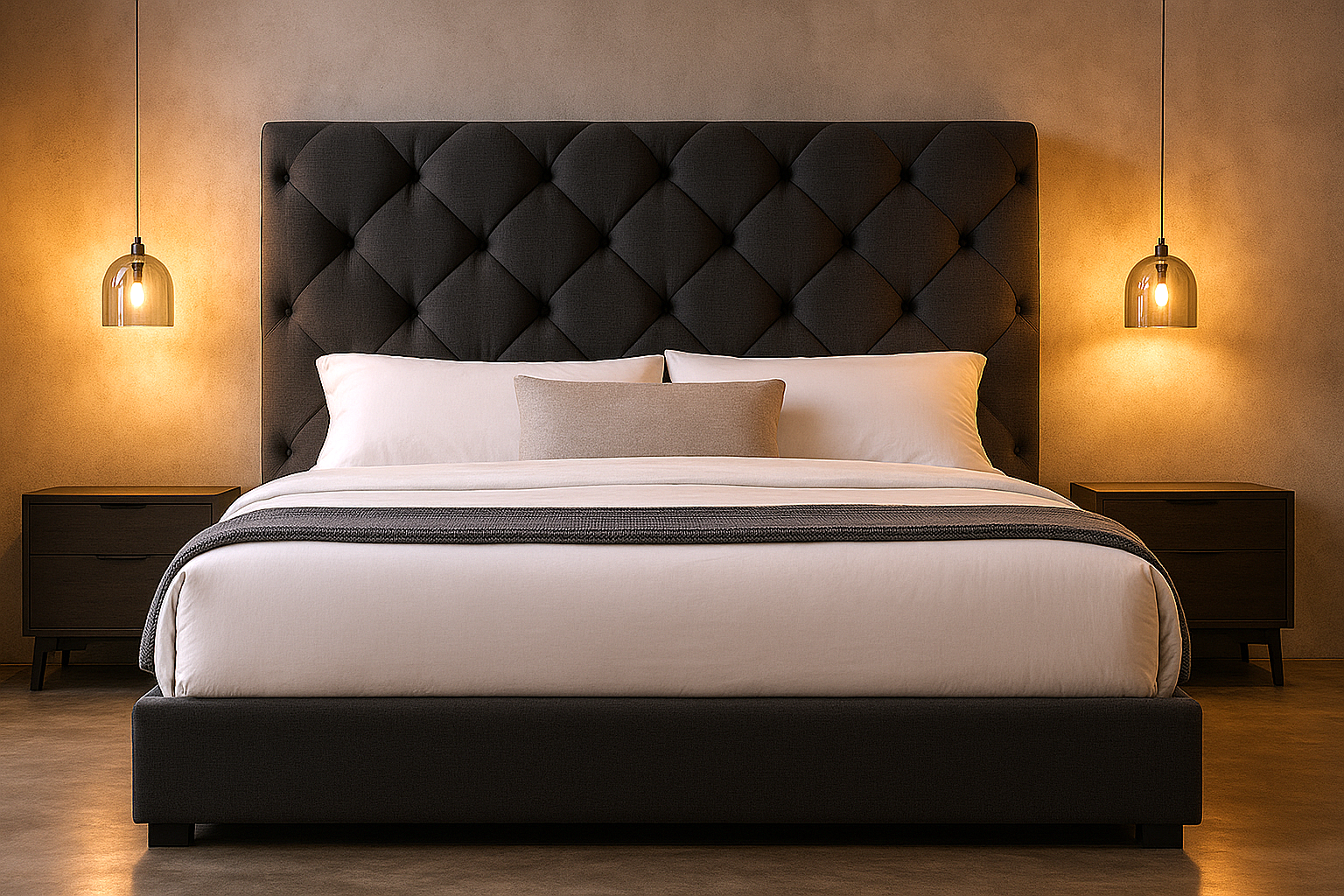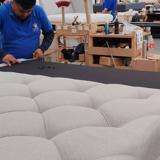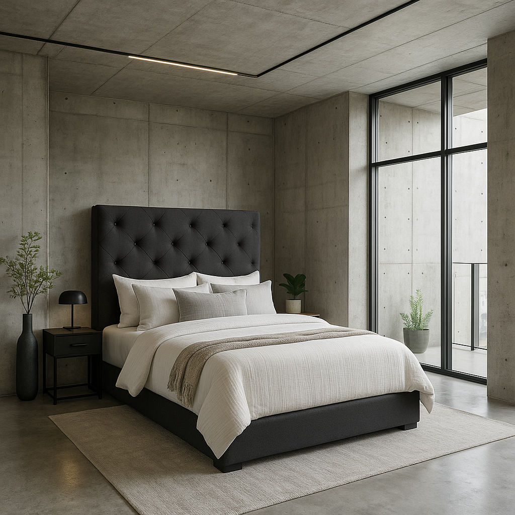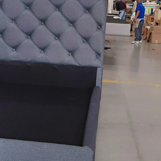 Elegancia atemporal con cabecera capitonada, base tapizada y estructura de madera sólida. Lista para usarse al recibirla.